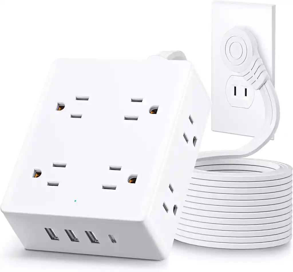 Marca olcorife Color Blanco Total de tomas de corriente 8 Voltaje 125 Voltios Características especiales Protección contra Sobretensiones Sobre este artículo 【Regleta de alimentación USB-C 12 en 1】 La regleta de alimentación todo en uno proporciona 8 salidas bien espaciadas, 3 puertos USB-A y 1 puerto USB-C, cargando 12 dispositivos simultáneamente. Cable de extensión de enchufe ultrafino de 5 pies: el enchufe ultrafino se puede ocultar fácilmente detrás de los muebles para ahorrar espacio. El cable de extensión plano es muy duradero y puede manejar corriente y potencia altas. Protección contra sobrecarga y sobretensión: el disyuntor integrado corta la alimentación cuando excede la potencia nominal para evitar sobrecorriente y sobrecalentamiento. Y el protector contra sobretensiones protege tus dispositivos electrónicos contra golpes de rayo. 【Regleta de alimentación para montaje en pared】 Hay dos agujeros de montaje en la parte posterior de la regleta de alimentación, que se pueden usar para instalar fácilmente la regleta en la pared cuando se usa en casa o en la oficina. 【Toma de corriente ampliamente espaciada en varios lados】 El diseño de varios lados aprovecha al máximo el espacio, permitiendo que una tira de alimentación de tamaño mini proporcione 8 tomas de corriente ampliamente espaciadas sin que se bloqueen entre sí.