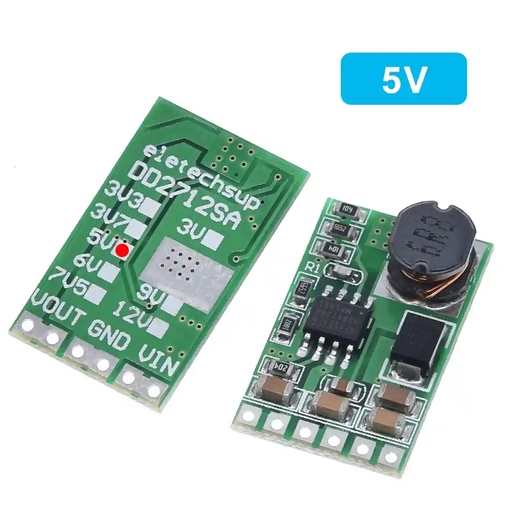 Voltaje de entrada 6,5 ~ 27V, salida 5V Corriente de salida máxima de 2,5 A, corriente de salida máxima de corta duración 3,5 A Módulo reductor convertidor de frecuencia de trabajo de 900KHz. La eficiencia es de 76-92%. Corriente de reposo: aproximadamente 250uA Apagado por sobretemperatura, bloqueo por bajo voltaje (UVLO), protección de voltaje BS y protección contra cortocircuitos. Temperatura de funcionamiento:-20 °C a + 85 °C Tamaño: 25x15x6,3mm Peso: 2,4g LA COMPRA INCLUYE: 1x REGULADOR MINI DD2712SA 5V