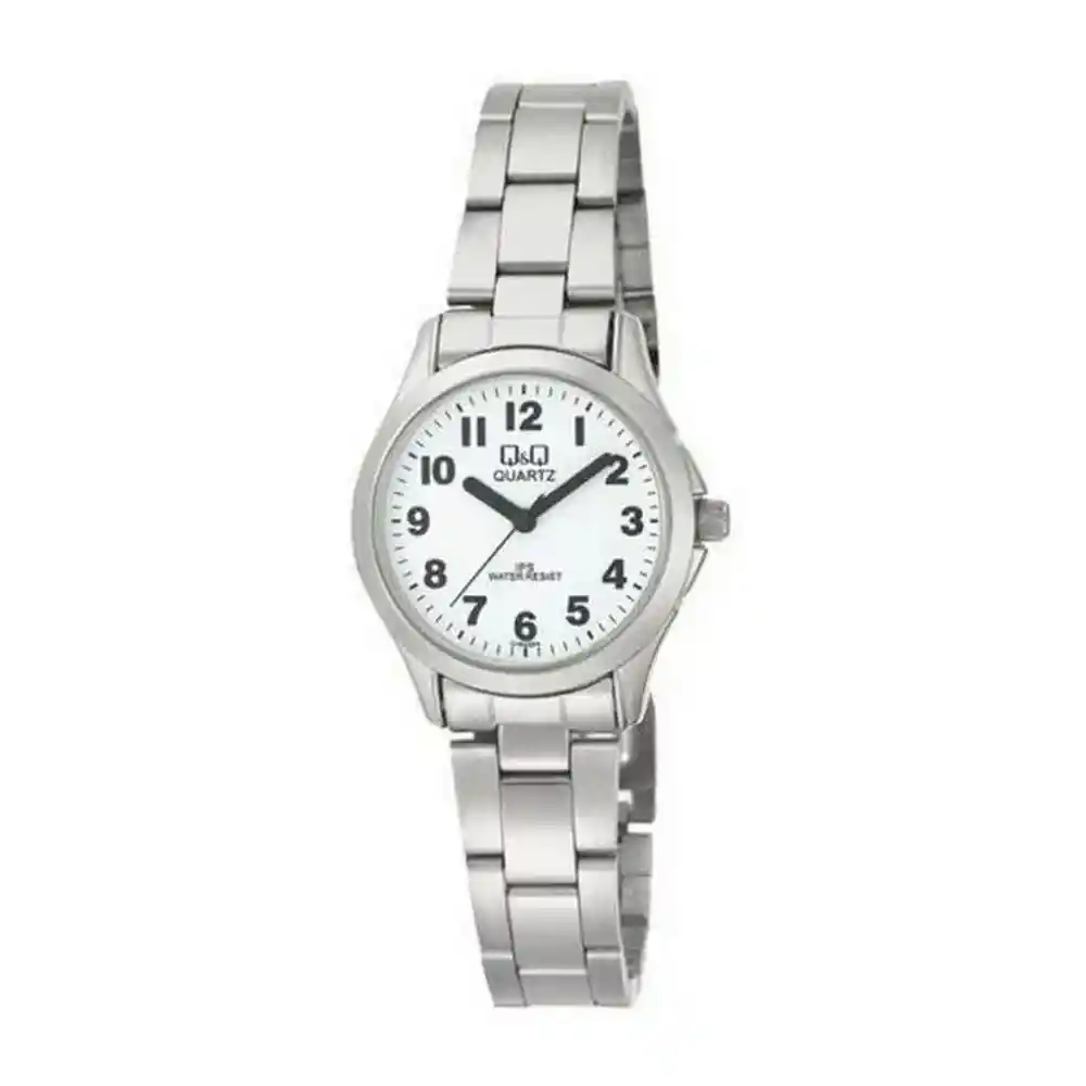 Este reloj QQ combina estilo y resistencia. Con correa de acero inoxidable y resistencia al agua, es perfecto para cualquier ocasión, ofreciendo durabilidad y elegancia en un diseño moderno y funcional. /// El reloj incluye estuche y bateria de repuesto /// Ficha Técnica: Tipo de Maquinaria: Japonesa Diámetro de la esfera: 3.3 cm Grosor de la Esfera: 0.7 cm Ancho de la correa: 1.2 cm Longitud del reloj: 22 cm Resistencia al agua : si Material de la correa: Acero Inoxidable Material de la esfera: Aleación Metal Peso: 50 gr Genero : Dama _Para defectos de fábrica o retractos: _Por favor revise el producto apenas lo reciba y antes de usarlo. No aplican ley de retracto o defectos de fábrica luego de usar el producto. Se manejan máximo 5 días para reportar defectos de fábrica (por ejemplo, piezas faltantes, rotas, etc). En cuanto a maquinaria se da tres meses de garantía, es decir el buen funcionamiento del producto. Para hacer efectiva la devolución el producto debe devolverse con el empaque original, el cual debe estar en buen estado, incluir todos los documentos y las partes completas y sin daños Garantía del vendedor: 3 meses