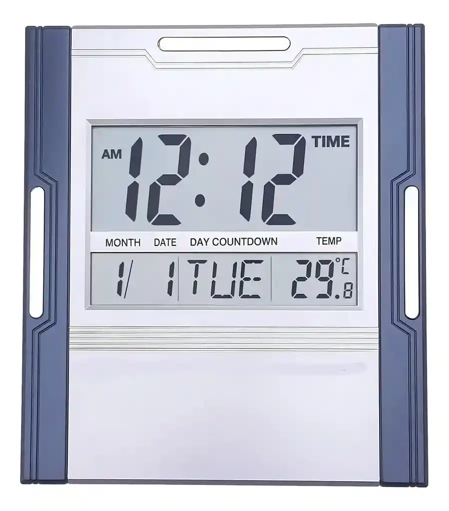 Funciones: Muestra hora, calendario (mes, fecha, día), temperatura y cuenta regresiva. Pantalla: Cuenta con una pantalla digital de gran tamaño para una fácil lectura. Diseño: Modelo KD-3810N en color gris, diseñado para montaje en pared o uso sobre mesa. Alarma: Incluye función de alarma integrada. El Reloj Digital de Pared Cuadrado Kadio KD-3808 en color gris no solo te proporciona la hora de manera precisa, sino que también incluye funciones adicionales que hacen de él un accesorio útil y versátil para tu espacio. Con su diseño cuadrado y pantalla digital, este reloj es moderno y fácil de leer. Además de mostrar la hora, también cuenta con una función de temperatura, lo que te permite conocer la temperatura ambiente de forma instantánea. Este reloj es perfecto para decorar tu pared, ya sea en el hogar u oficina, y su funcionalidad adicional lo hace aún más conveniente. CARACTERISTICAS Reloj Digital de Pared Cuadrado Kadio KD-3808 en color gris. Diseño moderno y cuadrado para decorar tu espacio. Pantalla digital para una lectura fácil y rápida de la hora. Función de temperatura para conocer la temperatura ambiente. Perfecto para el hogar u oficina. Alimentado por baterías para mayor versatilidad de ubicación. Fácil de montar en la pared. Ofrece la hora y la temperatura de manera clara. Estilo contemporáneo y funcionalidad combinados. Accesorio útil y decorativo para cualquier ambiente.