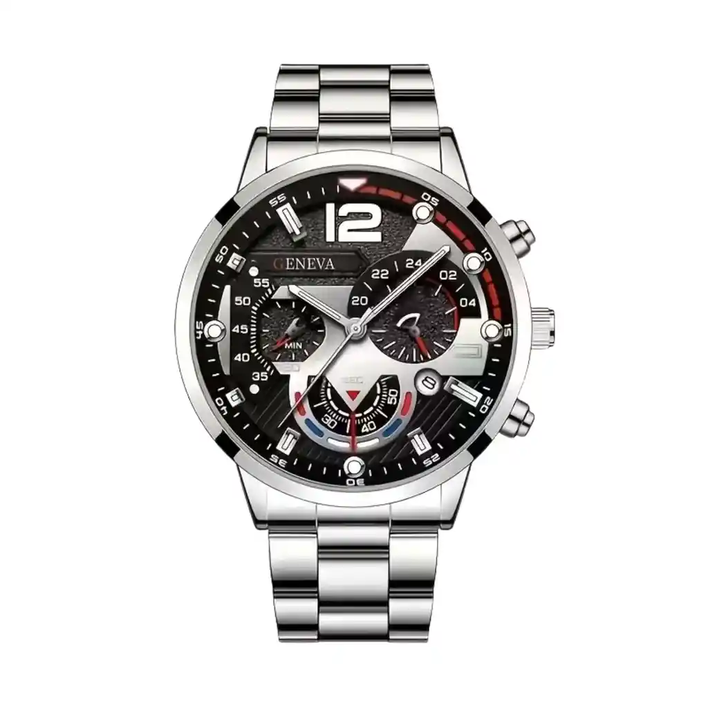 ✨ Elegancia clásica con un toque moderno. Su esfera negra con subesferas decorativas y detalles lo convierten en el accesorio perfecto para destacar. 📐 Especificaciones del producto: Diámetro del dial: 4.8 cm Grosor del dial: 1 cm Ancho de la correa: 1.7 cm Longitud de la correa: 22 cm Peso: 56 g 🔒 Diseño robusto, ideal para quienes buscan estilo y presencia. 🎁 Perfecto como regalo o para elevar tu look diario con un toque de sofisticación.