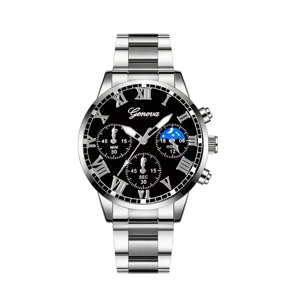 ✨ Elegancia clásica con un toque moderno. Su esfera con subesferas decorativas y detalles lo convierten en el accesorio perfecto para destacar. 📐 Especificaciones del producto: Diámetro del dial: 4.8 cm Grosor del dial: 1 cm Ancho de la correa: 1.7 cm Longitud de la correa: 22 cm Peso: 56 g 🔒 Diseño robusto, ideal para quienes buscan estilo y presencia. 🎁 Perfecto como regalo o para elevar tu look diario con un toque de sofisticación.