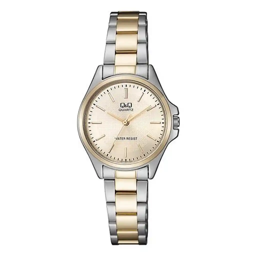 Este reloj QQ combina estilo y resistencia. Con correa de acero inoxidable y resistencia al agua, es perfecto para cualquier ocasión, ofreciendo durabilidad y elegancia en un diseño moderno y funcional. /// El reloj incluye estuche y bateria de repuesto /// Ficha Técnica: Tipo de Maquinaria: Japonesa Diámetro de la esfera: 3.3 cm Grosor de la Esfera: 0.7 cm Ancho de la correa: 1.1 cm Longitud del reloj: 22 cm Resistencia al agua : si Material de la correa: Acero Inoxidable Material de la esfera: Aleación Metal Peso: 50 gr Genero : Dama _Para defectos de fábrica o retractos: _Por favor revise el producto apenas lo reciba y antes de usarlo. No aplican ley de retracto o defectos de fábrica luego de usar el producto. Se manejan máximo 5 días para reportar defectos de fábrica (por ejemplo, piezas faltantes, rotas, etc). En cuanto a maquinaria se da tres meses de garantía, es decir el buen funcionamiento del producto. Para hacer efectiva la devolución el producto debe devolverse con el empaque original, el cual debe estar en buen estado, incluir todos los documentos y las partes completas y sin daños Garantía del vendedor: 3 meses