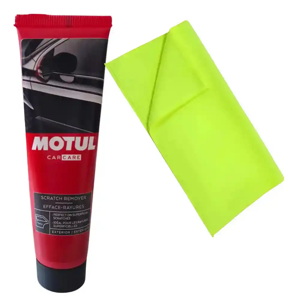 Removedor de Rayones Motul para Carro + Paño de Microfibra devuelve el brillo y la apariencia original a la pintura de tu vehículo con este práctico combo de removedor de rayones Motul + paño de microfibra. Ideal para eliminar marcas superficiales, mejorar el acabado y mantener tu carro con un aspecto limpio, cuidado y profesional.