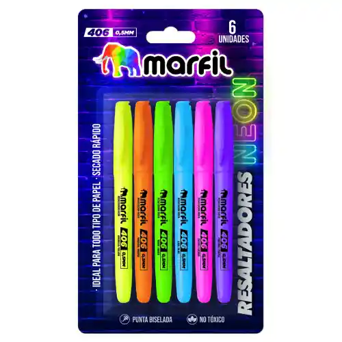 Set de 6 resaltadores en vibrantes colores neón, con punta delgada para mayor precisión. Perfectos para subrayar textos importantes sin saturar la página. Ideales para el uso escolar, universitario o en la oficina. Diseño ergonómico y cómodo de usar.