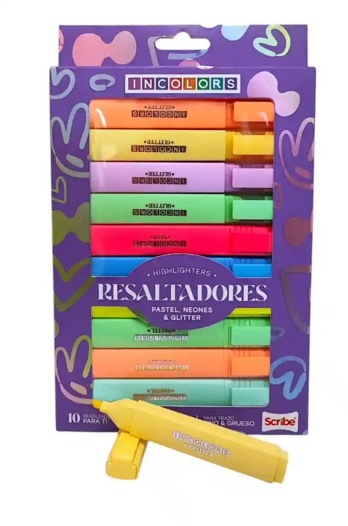 paquete por 10 resltadores: 3 pasteles, 3 nenones y 4 glitter