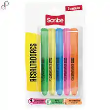 Resaltadores Scribe x 5 Und Trazo Fino y grueso, alto rendimiento.