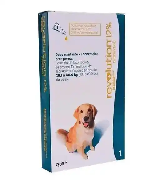 Parasiticida de amplio espectro, que permite el control y tratamiento de lombrices intestinales, Dirofilarias, Ácaros de la sarna, pulgas adultas, larvas y huevos en perros. También es efectivo en el control de las infestaciones producidas por garrapatas en perros. Revolution 12% contiene Selamectina, un nuevo compuesto de la clase de las avermectinas desarrollado por Zoetis Inc. específicamente para su uso en mascotas.