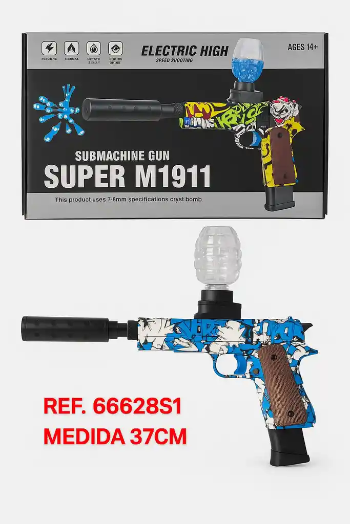 Vive la emoción de la acción con el M1911Assault Rifle, un rifle de juguete eléctrico de alto rendimiento diseñado para ofrecer disparos rápidos y precisos. Con un diseño moderno y colorido tipo camuflaje urbano, este modelo incorpora cargador superior para balas de gel (crystal bullets) de 7-8 mm, brindando una experiencia segura y divertida.