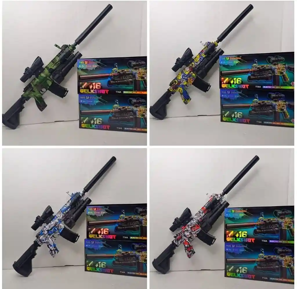 Domina el campo de batalla con el rifle M416 de hidrogel tamaño real 1:1, el lanzador de bolas de gel más completo y potente del mercado. Equipado con accesorios premium: linterna táctica, láser de precisión, mira telescópica ajustable, mirilla holográfica, silenciador desmontable y boquilla reforzada. Incluye batería doble de alta capacidad (carga completa en solo 2 horas) con autonomía de hasta 4 horas de juego continuo y cargador USB incluido. Dispara ráfagas precisas de bolas de hidrogel biodegradables con el paquete de 500 bolitas listas para usar. Disponible en 4 diseños exclusivos: Graffiti Roja, Graffiti Azul, Graffiti Amarilla y Verde Camuflaje. Ideal para mayores de 10 años y adultos que buscan acción realista, segura y sin ensuciar. ¡No esperes más! Agrega al carrito ahora y recibe tu M416 hidrogel hoy mismo. Stock limitado por color.