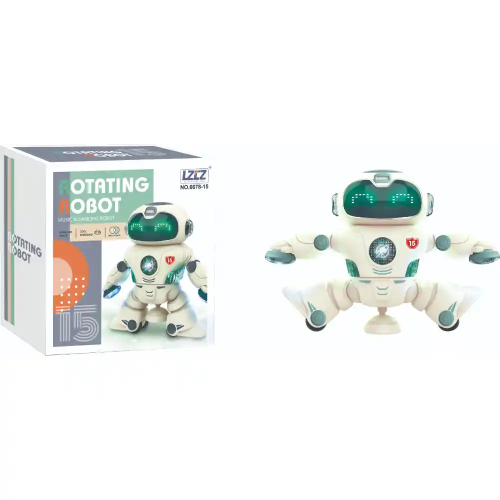 NOMBRE: ROBOT ROTATING PILAS CAJA DESCRIPCIÓN: Increíble Robot con movimiento que ayuda a estimular los sentidos de los más pequeños. Jugar con Robots ayuda a reforzar la creatividad, despertar el pensamiento crítico y mejorar la autoestima y tolerancia a la frustración de los niños mientras se divierten jugando y aprendiendo. Requiere 3 pilas AA no incluidas. - Dimensiones del producto empacado: 18.5X18.5X8 centímetros - Disponibilidad permanente - Despachos a nivel nacional - Tiempo de entrega aproximado 3 a 4 días hábiles contados a partir del día hábil siguiente al pedido. La plataforma te dará un tiempo de entrega mas preciso al momento de concretar la compra. Estamos atentos a resolver cualquier inquietud que tengas después de revisar las fotos y descripción del producto. JUGUETELANDIA más de 30 años ofreciendo diversión.