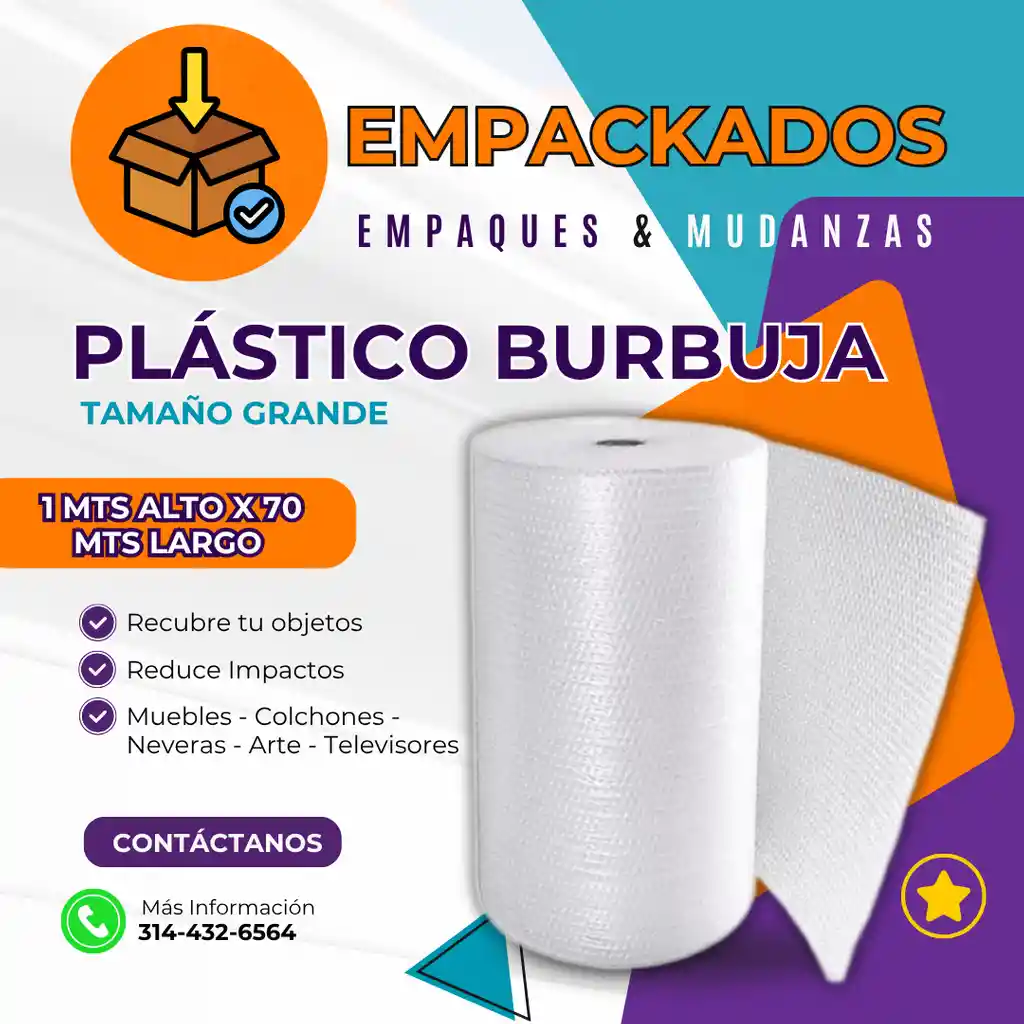 🔵 Plástico Burbuja para Mudanzas y Embalaje Industrial – Protección Total ✅ El aliado perfecto para proteger tus objetos durante mudanzas, envíos o almacenamiento. 💨 Burbujas de aire amortiguadoras que absorben impactos y evitan rayones o rupturas. 📏 Burbuja tradicional disponibles en rollos de 1 mts alto x 70 mts ancho. 💧 Impermeable y resistente a la humedad: protege contra líquidos y clima. 🔄 Flexible y adaptable a cualquier forma: desde muebles hasta objetos frágiles. 📦 Ligero y fácil de manipular, ideal para envolver, empacar o rellenar espacios. ♻️ Reutilizable y transparente, permite ver el contenido sin desenvolver. ➡️ Usos recomendados: muebles, vajillas, cristalería, porcelanas, cuadros, figuras de ceramica, electrónicos, antigüedades, ropa y más. ➡️ Ideal para empresas de logística, transporte, mudanzas o ecommerce. 📦 Stock disponible – Envíos inmediatos o retiro en punto de venta. 📲 Contáctanos al WhatsApp: 314-432-6564 🔍 Búscanos como: plástico burbuja, papel burbuja para mudanza, embalaje protector, material para objetos frágiles.