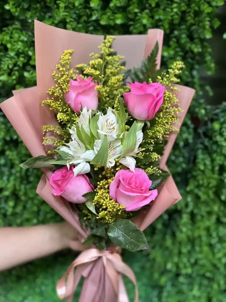 Ramo de 3 girasoles, gerberas mas relleno y papel coreano