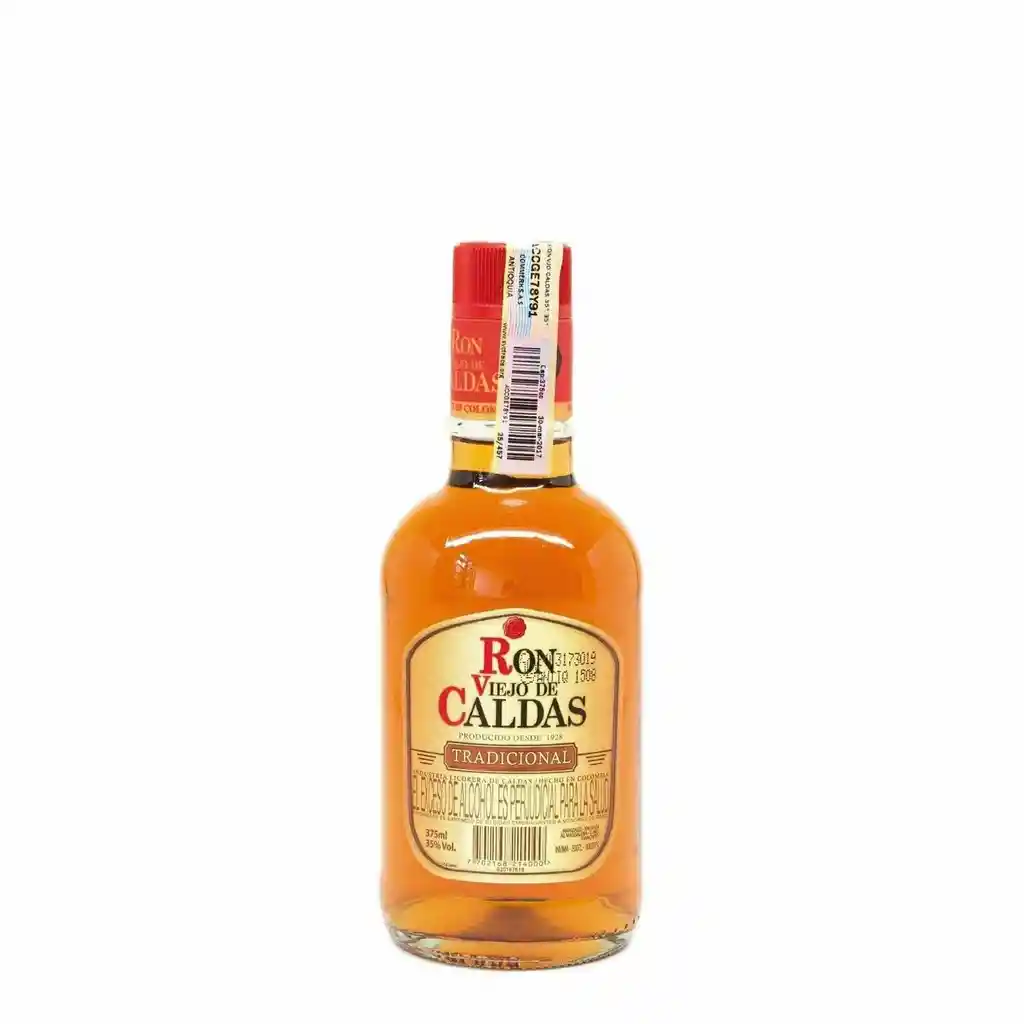 El ron viejo de Caldas tradicional viene en media botella por 375 ML producido de la caña de azúcar y añejado en barriles de roble para que consiga su sabor. Contiene un sabor dulce frutal, madera bajo y amargo. Colombia.