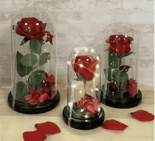 Rosa Eterna en Cupulas colores: amarillo, azul, blanco, fucsia, negra, rojo, rosado Nota: Si desean alguna Tarjeta Personalizada escribir al Chat El Mensaje,