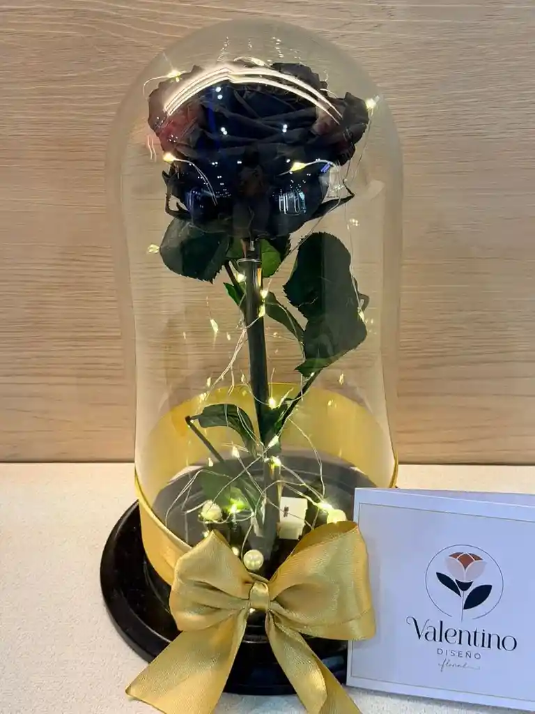 La rosa preservada negra es una rosa natural tratada para durar meses o años sin agua ni luz, manteniendo su forma, textura suave y color profundo gracias a un proceso donde la savia se reemplaza por un líquido conservante (glicerina). Es un símbolo de amor eterno, misterio, elegancia y poder, ideal para decoración interior, destacando por su durabilidad y aspecto sofisticado, sin necesidad de cuidados como riego o sol directo.
