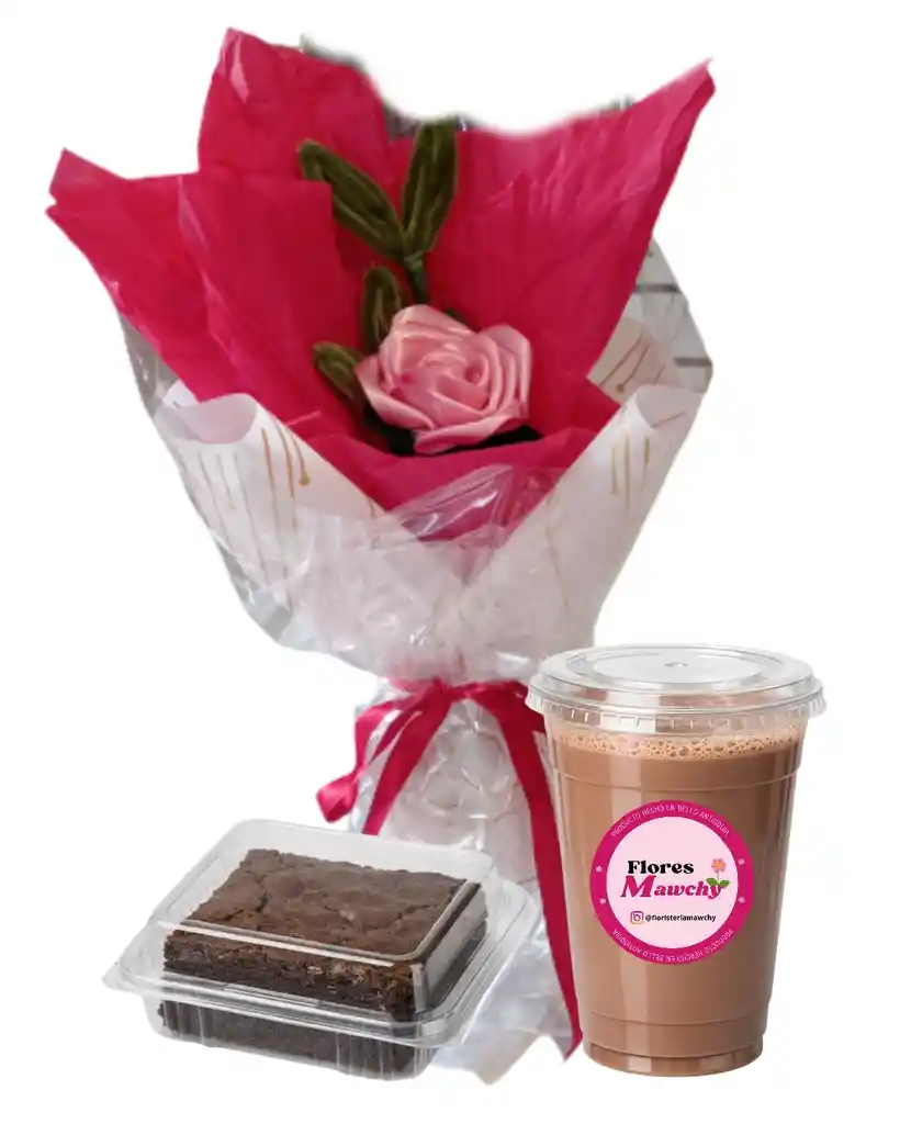 Rosa Solitaria Con Cafe Latte Frio Y Brawnie