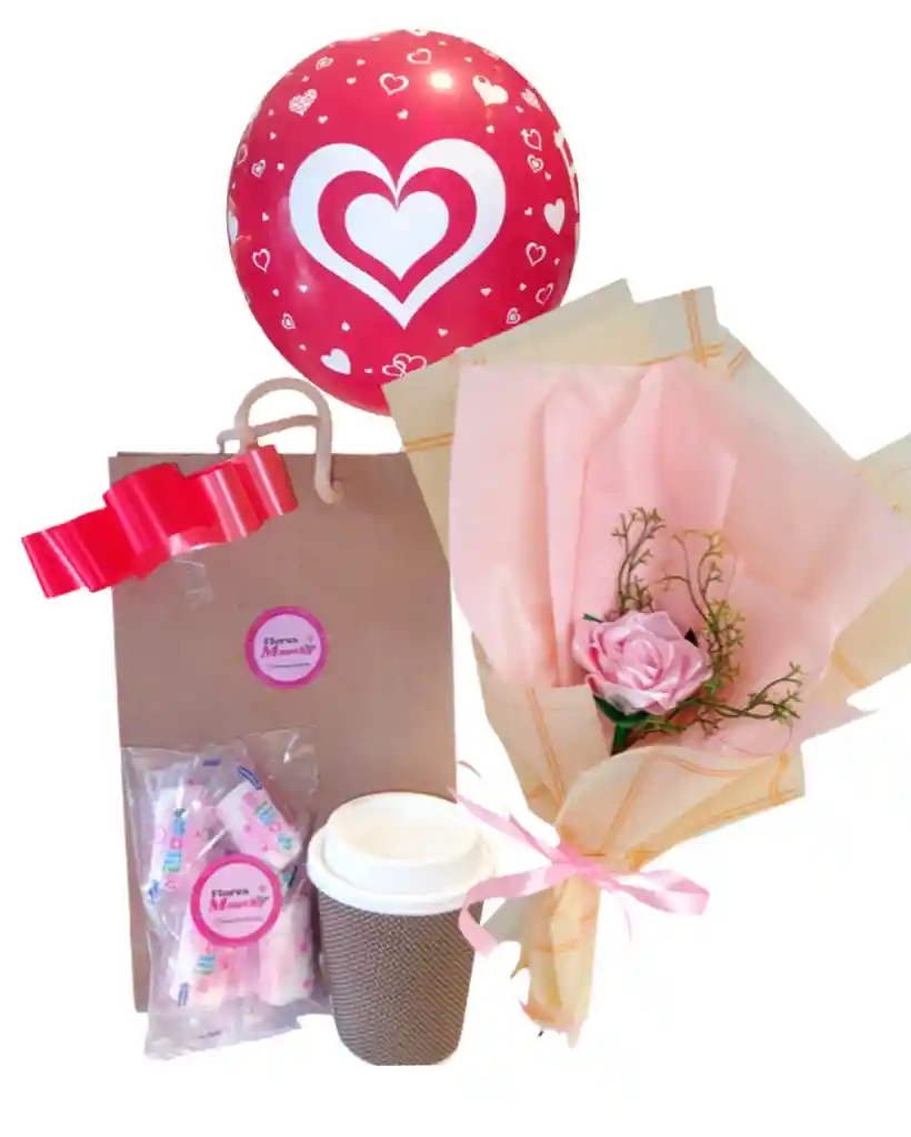 Hermosa rosa solitaria eterna ideal para hacer de un momento cualquiera uno muy especial, acompañado con chocolate caliente de 9oz y masmelos ,una combinacion llena de cariño y calidez, incluye un globo sencillo y tu mensaje personal