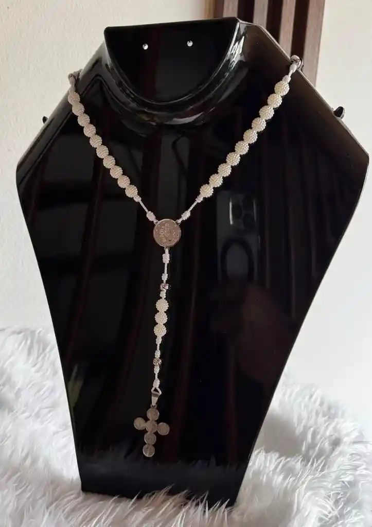 Eleva tus momentos de oración con este hermoso rosario artesanal, elaborado con cuentas en pepa mora de alta calidad que reflejan suavidad, luz y pureza con detalles plateados. Incluye: ✨ Medalla plateada con diseño religioso en acero inoxidable ✨ Misterios distinguidos con perlas de rodio ✨ Cruz dorada especial y distintiva en acero inoxidable ✨ Ensamblado en hilo resistente para mayor durabilidad ✨ Ideal para uso diario, regalos espirituales, bautizos, primeras comuniones y acompañar tus espacios sagrados Su diseño delicado y moderno lo convierte en una pieza significativa, perfecta para quienes buscan un rosario hermoso, resistente y con un acabado premium.