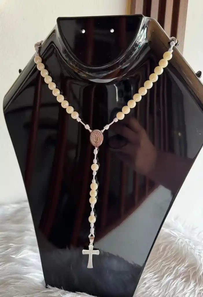 Un rosario único y luminoso, elaborado con cuentas tipo perlas color crema que cambian ligeramente de tonalidad según la luz. Incluye medalla religiosa y una cruz metálica moderna. Es un rosario hermoso, especial y perfecto para obsequiar en bautizos, primeras comuniones o para acompañar devociones diarias. Incluye: ✨ Medalla dorada con diseño religioso en acero inoxidable ✨ Misterios distinguidos con perlas de rodio ✨ Cruz dorada especial y distintiva en acero inoxidable ✨ Ensamblado en hilo resistente para mayor durabilidad ✨ Ideal para uso diario, regalos espirituales, bautizos, primeras comuniones y acompañar tus espacios sagrados Su diseño delicado y moderno lo convierte en una pieza significativa, perfecta para quienes buscan un rosario hermoso, resistente y con un acabado premium.
