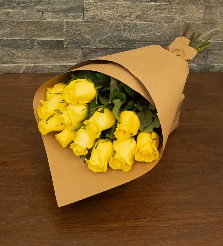 12 rosas amarillas en bouquet perfectas para el Agradecimiento