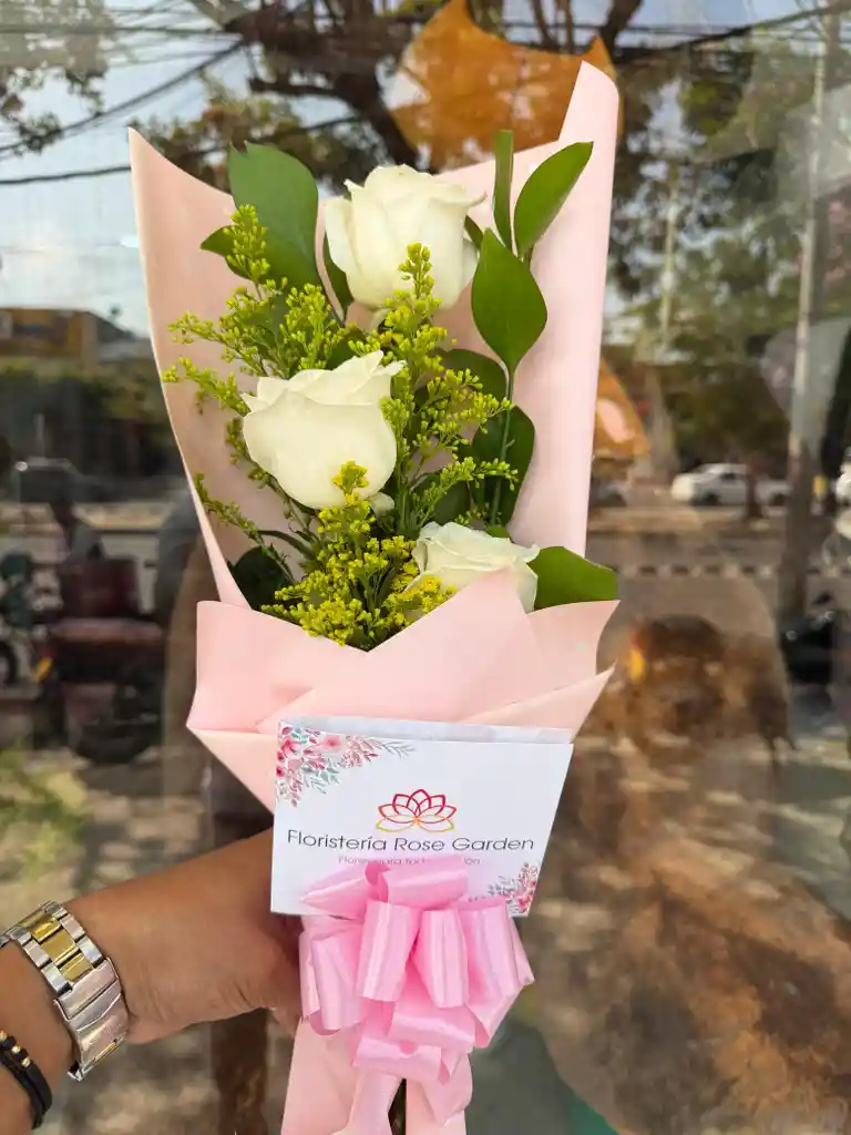 ROSAS BLANCAS DECORADAS EM PAPEL COREANO Y FOLLAJE