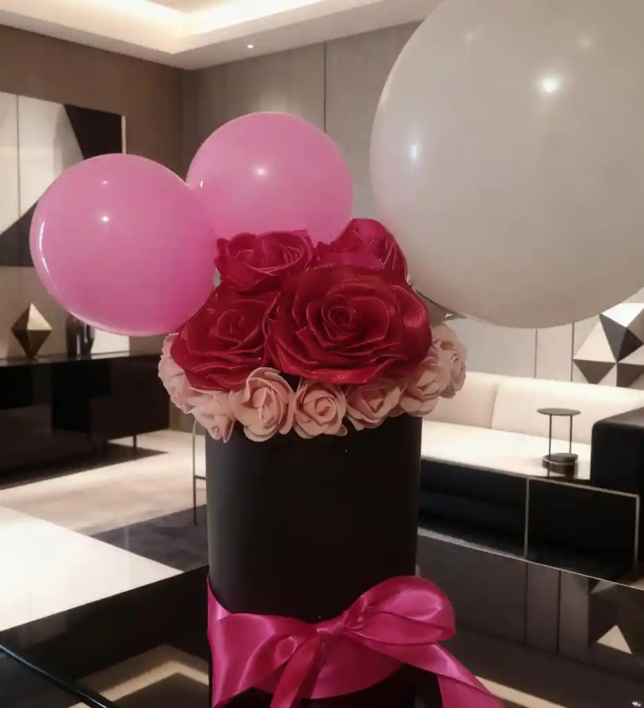 12 Rosas Naturales y Artificiales 1 Domo Negro 1 Decoración 1 Globo