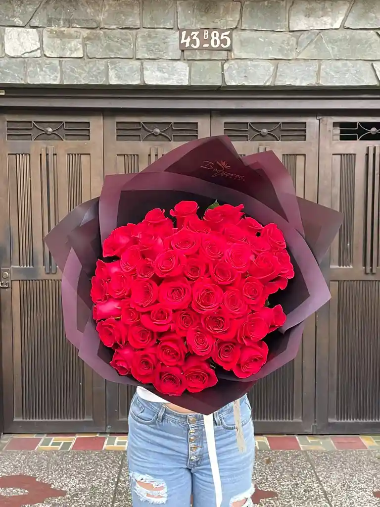 Rosas, Bouquet Buchón de 48 rosas rojas, el color del papel puede variar segun disponibilidad. Mensaje personalizado, dejar mensaje en el chat.