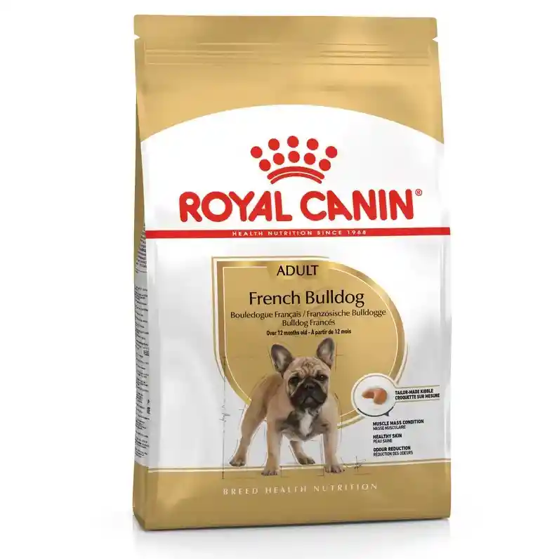Alimento completo para perros adultos de raza Bulldog Francés. Es un alimento apto para adultos de con más de 12 meses de edad, que ha sido especialmente formulado teniendo en cuenta las necesidades nutricionales de tu peludo bulldog en fase de crecimiento, su tamaño y forma se adapta a su mandíbula braquicéfala, por lo que la croqueta se ha diseñado para facilitarle la prensión. Gracias a un complejo de antioxidantes, refuerza el sistema inmunológico, mientras que por su contenido de prebióticos y proteínas favorece su buena salud digestiva y cutánea.