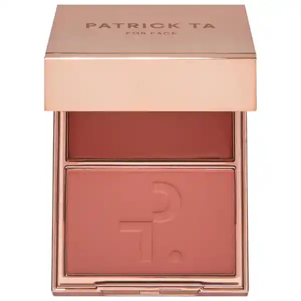 El rubor de Patrick Ta Major Headlines Double-Take Crème Powder Blush Duo es un dúo que combina rubor en crema y polvo en un solo compacto, ideal para lograr un acabado radiante, natural y duradero. Inspirado en la técnica "cream-over-powder" del maquillador Patrick Ta, este dúo permite modular la intensidad del color para obtener desde un brillo sutil hasta un efecto más definido y dimensional.