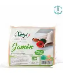 Embutido elaborado a base de vegetales imitación jamón. Ideal para sándwiches, ensaladas, arroces, pastas, lasañas, pizzas, o consumir directamente. Ingredientes: soya, cereal (trigo), aceite vegetal, saborizante imitación a pollo (idéntico al natural), sal, especia (ajo), colorante (eritrosina) y sorbato de potasio (conservante). Producto refrigerado