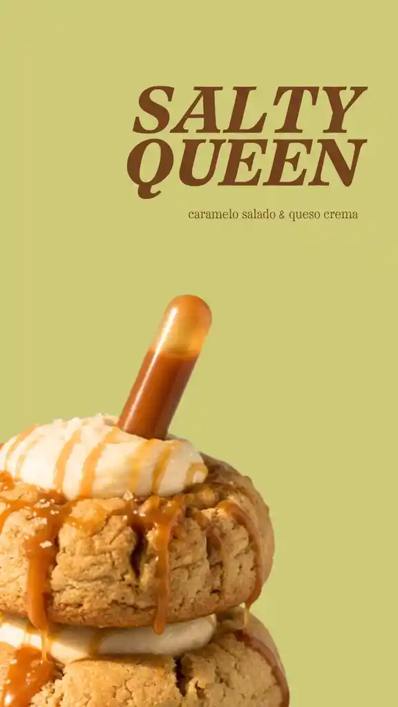 Galleta con caramelo salado y centro de queso crema. El contraste perfecto para quienes quieren algo diferente delicioso sabroso.