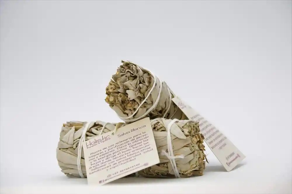 SAHUMERIOS SAGRADOSSalvia Blanca Californiana Purifica y armoniza tus espaciosInciensos naturales y ancestrales para realizar limpieza física y espiritual. Eleva las vibraciones y expulsa las energías negativas.PRESENTACION:Salvia Blanca Californiana (12 cm.)