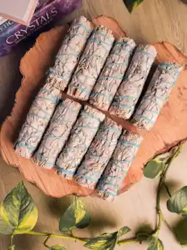La Salvia Blanca ha sido utilizada por nuestros antepasados durante siglos para prácticas espirituales como la meditación, la limpieza de hogares y áreas sagradas, el equilibrio de chakras y la eliminación de energía negativa de las auras. Cuando la Salvia se quema, libera iones negativos, lo que está relacionado con poner a las personas en un estado de ánimo positivo. Quemar Salvia, implica literalmente quemar las hojas de salvia seca y dejar que el humo purifique el aire en su hogar y de su cuerpo energético. Algunos de los beneficios de quemar Salvia son los siguientes: - Elimina bacterias del aire - Repela insectos - Mejorando la intuición - Purifica objetos específicos (cristales, lugares sagrados, etc.) - Mejora el estado de ánimo y reduce el estrés y la ansiedad. Cómo utilizarla: 1. Abre ventanas y puertas para dejar que fluyan las energías negativas. 2. Enciende el manojo de la salvia con la llama de una vela. (Es posible que debas volver a encenderla varias veces durante le proceso.) 3. Empieza en la puerta principal del espacio. Despacio y con gracia, ve por todo el lado izquierdo impregnando de humo desde el techo hasta el piso. 4. Tomate el tiempo para notar el proceso de curación y el hermoso humo en forma de remolino, ya que limpia naturalmente el aire que tu y tu familia respiran. 5. El manojo lo podrás usar varias veces. Deja que esto sea parte de una rutina para la limpieza de tu hogar o la rutina de cuidado personal. 6. Puedes agradecer y orar mientras esparces el humo por todo el espacio, visualiza como el humo al salir por las ventanas y puertas se lleva contigo las energías densas. Características: Recibirás 5 manojos de Salvia Blanca de 10 cm de largo cada uno aproximadamente.