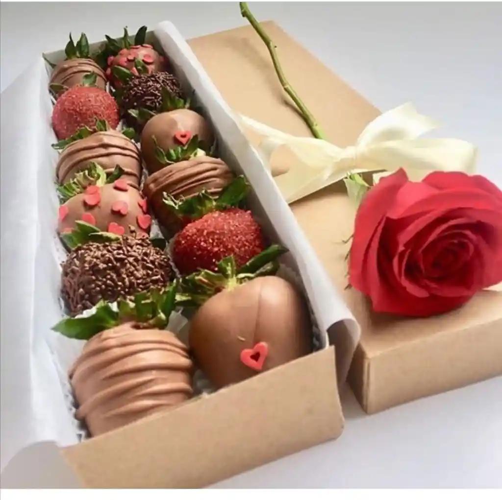 ROSA Y FRESAS SAN VALENTIN
