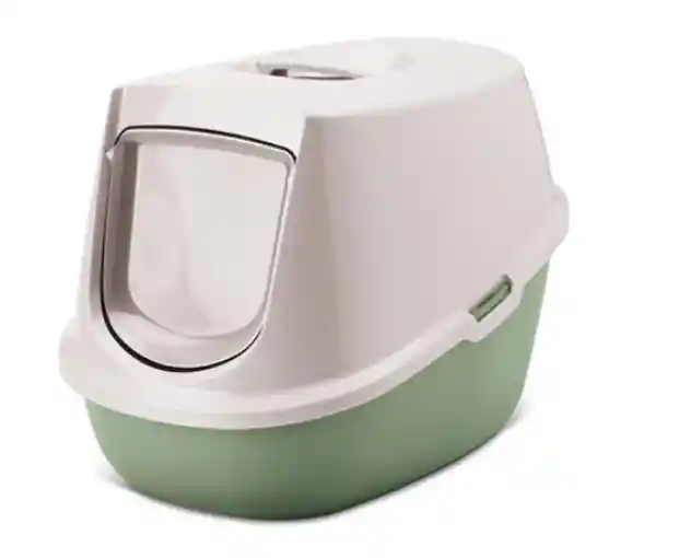 MANON MOCA-VERDE Arenero cubierto con puerta y filtro. Ancho 39 x fondo 54,5 x alto 39 cm.