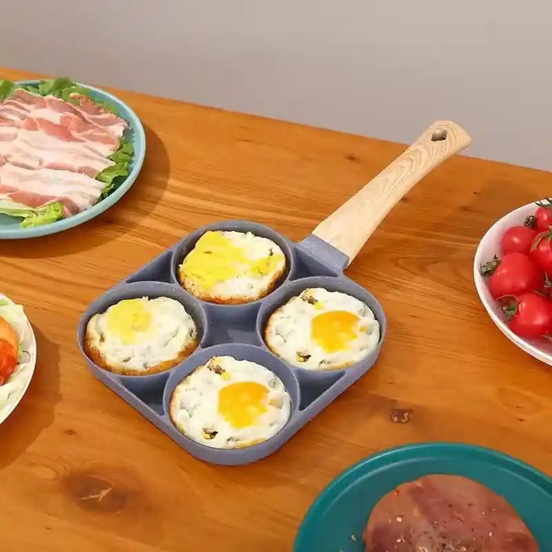 Prepara tus más deliciosos desayunos, almuerzo o el alimento que desees con este hermoso sarten 4 puestos antiadherente, fácil de limpiar y almacenar, conducción uniforme