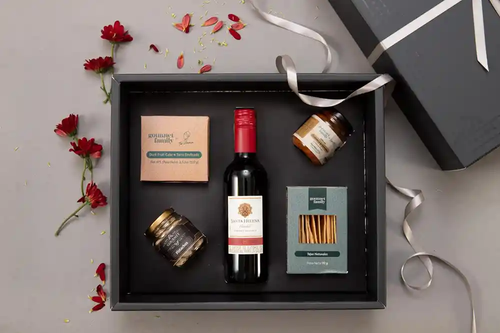 Media botella de vino (375 ml), tejas naturales (90g aprox), dip de orellanas (130 ml), pistachos (40g aprox) ...Ver más