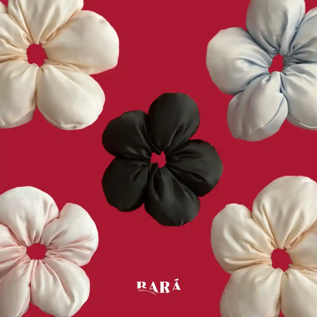 Las scrunchies en forma de flor son muy versátiles, complementan tu outfit y le dan un look diferente a tu peinado. Además son muy cómodas! Descripción del producto: Moña/scrunchie para el cabello de 15 cm con resorte interno, hecha en satín. color: NEGRO Busca en nuestra tienda más colores disponibles