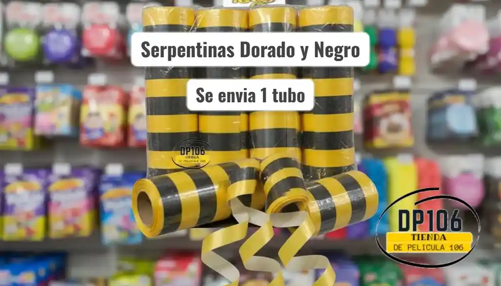 un cilindro de serpentinas dorado y negro cilindro (12 serpentinas)