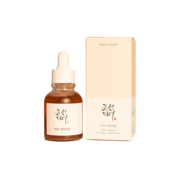 "Diseñado para pieles que se sienten cansadas, secas y sin elasticidad, nuestro Revive Serum reúne dos potentes ingredientes K-beauty (Ginseng + Muncina de caracol) para ayudar a refrescar y mejorar tu cutis. Este Serum es especialmente diseñado para reparar e iluminar el cutis. Enriquecido con ingredientes herbales tradicionales coreanos (""hanbang"") como el ginseng, la raíz de regaliz y el hongo matsutake. La muncina de caracol al 3% es un súper ingrediente de esta fórmula para unificar el tono de la piel, reduciendo la hiperpigmentación y las cicatrices. Mejora la renovación celular y brinda a tu piel un brillo saludable y uniforme. El agua de raíz de ginseng al 63% es rica en antioxidantes mejora la circulación para ayudar combatir los signos de la edad, de hecho, el ginseng es ampliamente considerado como un superalimento y es conocido por sus propiedades curativas. Ideal para pieles secas, normales y mixtas. Con un pH de 6, este serum está formulado sin fragancias artificiales, parabenos, sulfatos, colorantes artificiales, alcohol, silicona, aceite mineral y aceites esenciales."