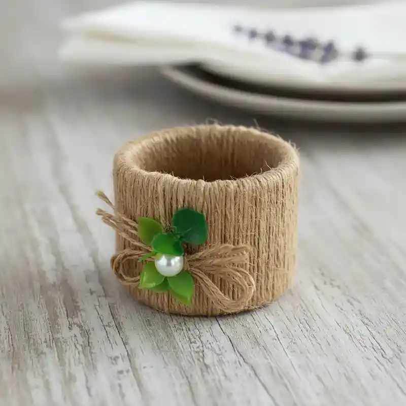Servilletero De Hilo Fique Con Flor y perla decorativa de plástico - Set De 6