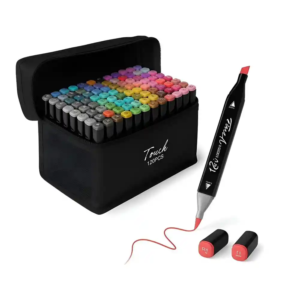 Lleva tus ilustraciones y diseños al siguiente nivel con este set profesional de 120 marcadores artísticos de alta gama, diseñados para ofrecer una versatilidad inigualable gracias a su sistema de doble punta: una punta fina para trazos precisos y detalles minuciosos, y una punta ancha tipo cincel ideal para rellenos uniformes y caligrafía impactante. Cada marcador está codificado por color y número en ambas tapas para una identificación inmediata, permitiéndote trabajar con una paleta vibrante que se mezcla suavemente para lograr degradados perfectos. El set incluye un estuche de transporte resistente con organizadores internos que mantienen tus herramientas protegidas y en orden, convirtiéndolo en el kit definitivo para arquitectos, diseñadores, estudiantes de arte y entusiastas del lettering que buscan calidad profesional y una durabilidad excepcional en cada trazo. FICHA TÉCNICA Marca: Touch Modelo: 120 Colores Cantidad de marcadores: 120 unidades Tipo de punta: Doble punta (Fina y Cincel) Ancho de punta fina: 1 mm Ancho de punta cincel: 6 mm Tipo de tinta: Base de alcohol (Secado rápido) Material del cuerpo: Plástico ABS de alta resistencia Forma del cuerpo: Ergonómica cuadrada (evita que rueden) Incluye estuche: Sí, maletín de tela Oxford con cierre Dimensiones del estuche: 22 cm de largo x 18 cm de alto x 15 cm de ancho Peso total: 2.1 kg aproximadamente POLÍTICAS DE GARANTÍA La garantía de este producto tiene una vigencia de 30 días calendario a partir de la fecha de recepción. Esta cobertura aplica exclusivamente para defectos de fabricación o marcadores que presenten fallas de entintado al momento del primer uso. No se aceptarán reclamaciones por desgaste natural debido al uso, puntas dañadas por presión excesiva o si los marcadores fueron dejados destapados provocando su secado. Para procesar cualquier devolución, es indispensable que el producto sea devuelto en su estuche original, con el conteo completo de las 120 piezas y sin muestras de maltrato físico.