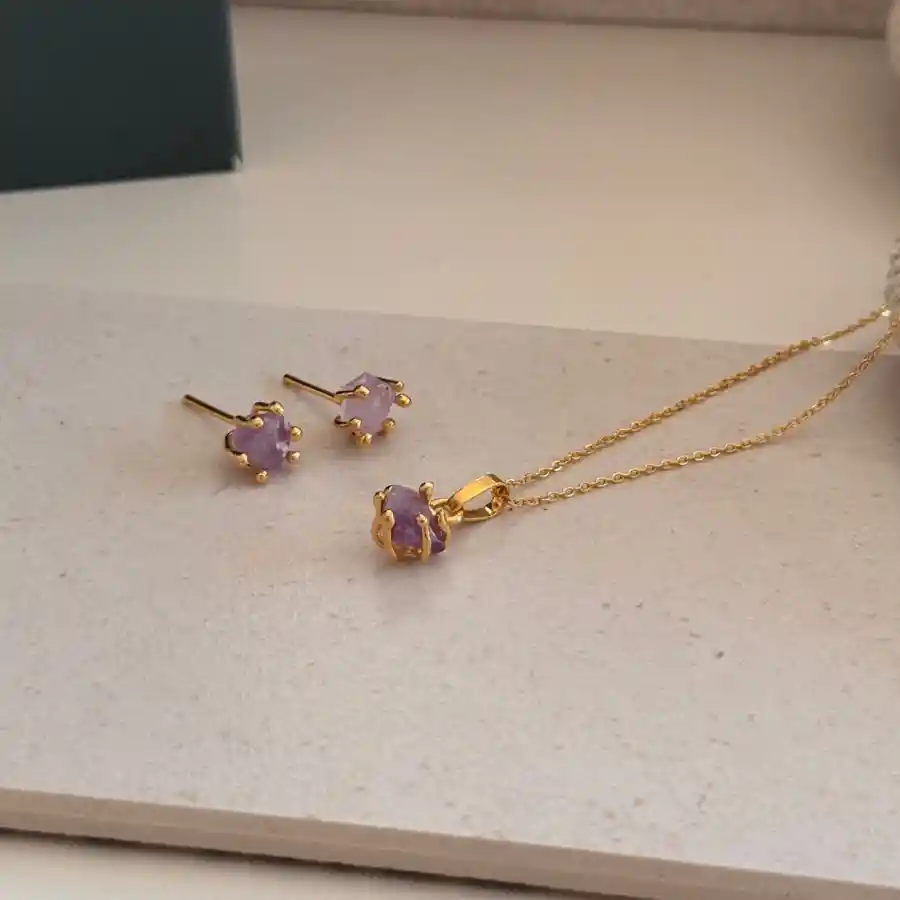 Diseño en Bronce Bañado en Oro - Acompañado con piedra amatista