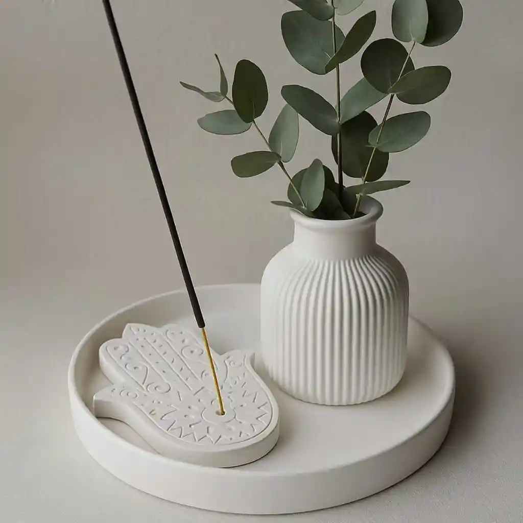 Contiene Bandeja Florero Portaincienso Color: blanco Material: concreto