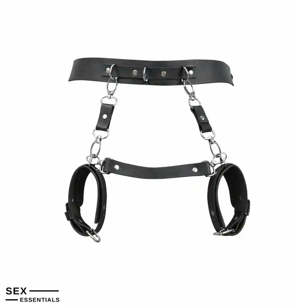 Set BDSM de Cuero Negro Premium: Manillas Ajustables, Material de Cuero Genuino, Ideal para Juegos de Roles para Adultos y Bondage para Parejas