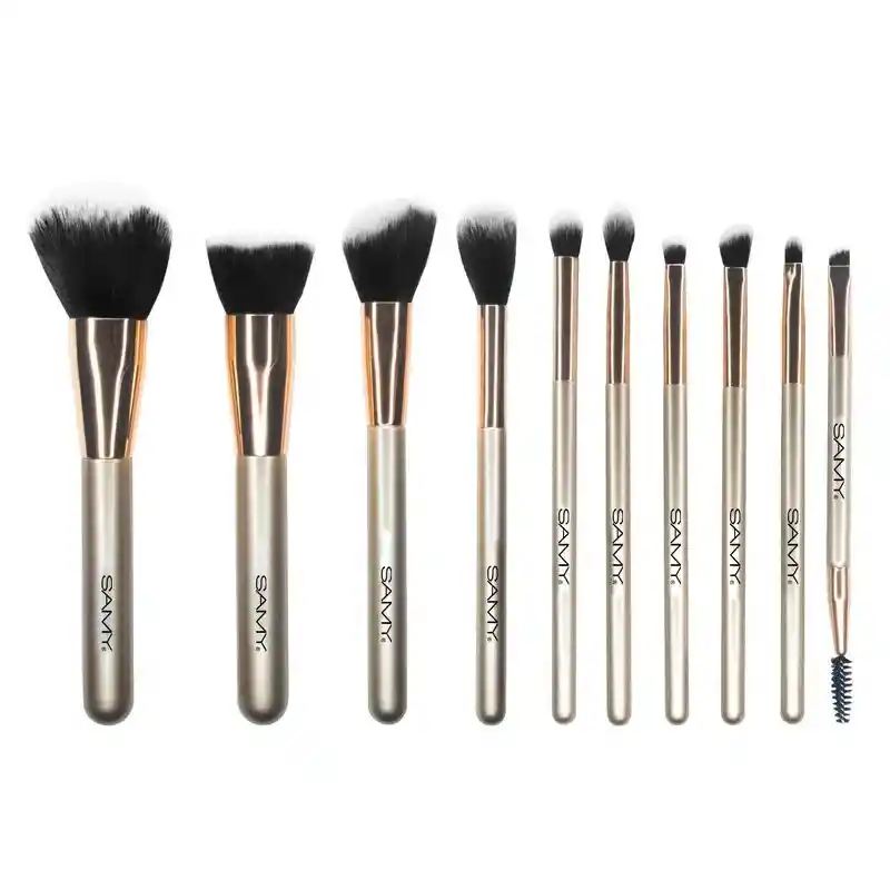 El complemento perfecto para tu rutina de maquillaje. 10 brochas para rostro, ojos y cejas. Fabricadas en pelo sintético y mango de madera.
