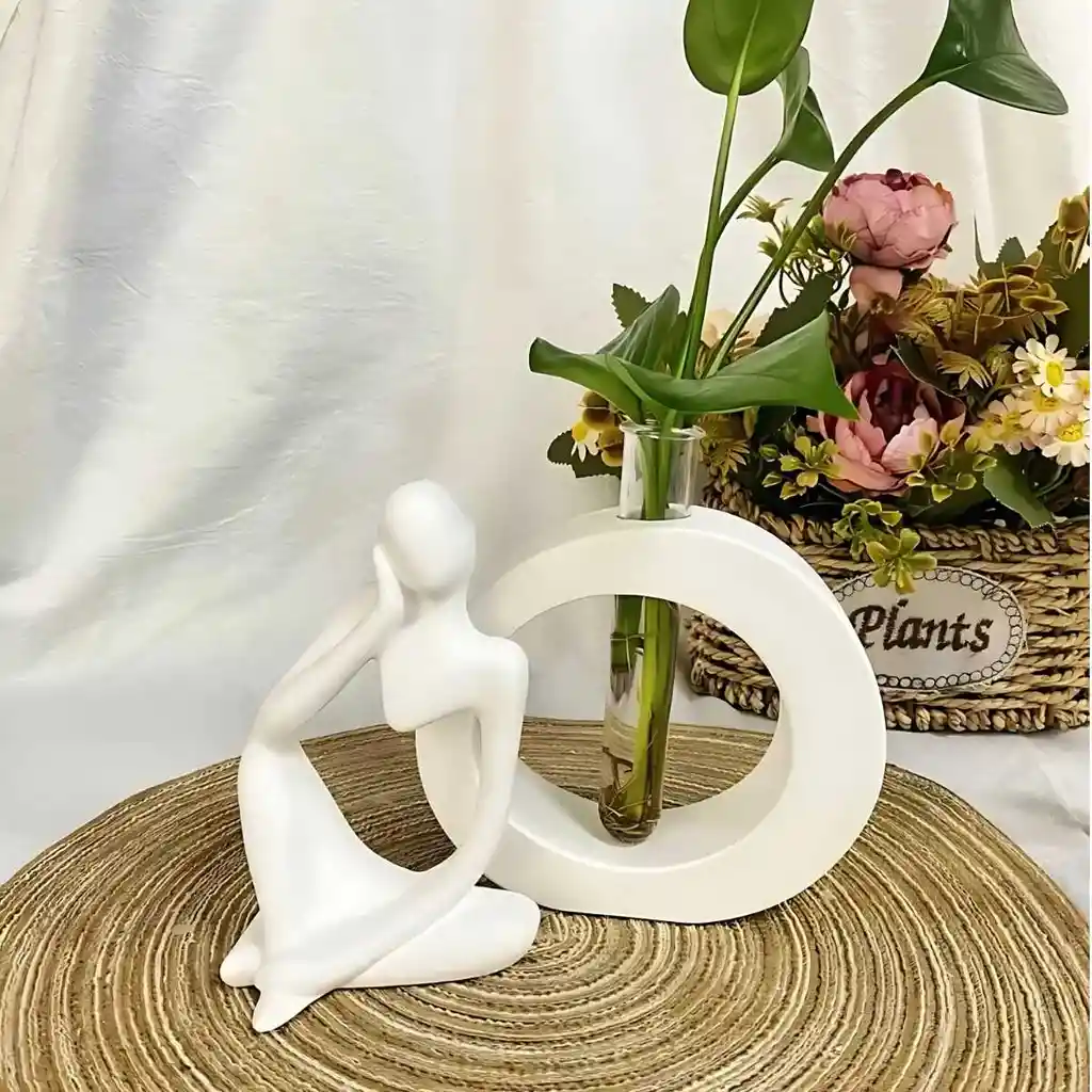 Contiene: Florero hidroponico Escultura Color: Blanco Material: concreto