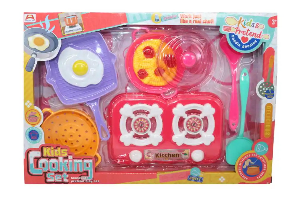 NOMBRE: SET COCINA KIDS COOKING CAJA DESCRIPCION: Fabuloso Set de Cocina ideal para que las pequeñas pasen horas emocionantes y entretenidas, recreando fantásticas historias culinarias y preparando deliciosas recetas. Este Juguete invita a las niñas a involucrarse en actividades lúdicas, que son altamente beneficiosos para ellas, estimulando su imaginación y creatividad mientras juegan con elementos de cocina. Incluye imitación de accesorios, comida y utensilios de cocina. - Dimensiones del Empaque: 27 X 38,5 X 4,6 centímetros - Disponibilidad permanente - Despachos a nivel nacional - Tiempo de entrega aproximado 3 a 4 días hábiles contados a partir del día hábil siguiente al pedido. La plataforma te dará un tiempo de entrega mas preciso al momento de concretar la compra. Estamos atentos a resolver cualquier inquietud que tengas después de revisar las fotos y descripción del producto. JUGUETELANDIA más de 30 años ofreciendo diversión. Fabricante: HENG FA TOYS FACTORY Importador: Plasticos Asociados SA Recomendaciones: Requiere de la supervisión directa de un adulto, puede contener partes pequeñas, riesgo de asfixia o ahogamiento, no destinar este juguete para menores por debajo de la edad establecida en la etiqueta. Edad mínima sugerida: 3 Años Lote: Dato variable. Se puede verificar en el sticker que trae el producto físico. Fecha de fabricación: Dato variable. Se puede verificar en el sticker que trae el producto físico.