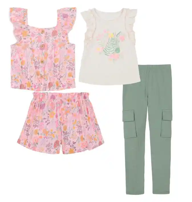 Descripción El Set de 4 Piezas para Niñas de Kids Headquarters es la combinación perfecta de comodidad, estilo y versatilidad. Ofrece atuendos completos y listos para usar en cualquier ocasión, desde juegos diarios hasta salidas familiares. Incluye dos camisetas de manga corta, un short y un legging, permitiendo crear múltiples combinaciones según el clima o la actividad Información del producto Kids Headquarters Set 4 Piezas para Niñas | Incluye dos camisetas de manga corta, un short y un legging | Diseños modernos y versátiles | Suave al tacto y cómodo para uso diario | Tejidos resistentes y transpirables | Prendas combinables entre sí | Ideal para actividades escolares, juego y uso casual.